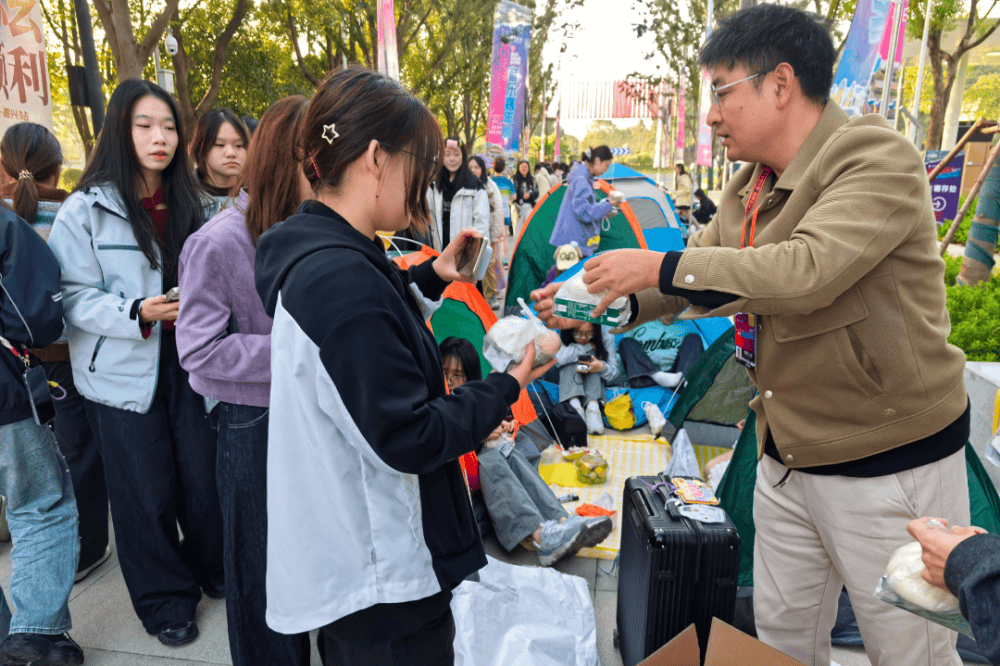 公园当天累计接待客流超1.5万人,上海及嘉兴市级媒体联动报道,覆盖人群近千万。大批乐迷在演出前一晚就陆续抵达嘉兴中央公园外有序排队,只为抢占心仪观演位置。深秋寒夜中,嘉兴产业集团提前部署,主动推出系列“宠粉”举措:不仅为在等候区搭帐篷过夜的乐迷送上暖宝宝与小面包组成的“暖心能量包”,更于25日清晨,贴心发放内含肉包、牛奶、鸡蛋的“嘉兴风味”早餐礼包。一份份温热早餐,一句句亲切问候,让来自全国各地的乐迷在寒秋清晨感受到来自嘉兴的城市温度,也成为音乐节开幕前最动人的人文序章。