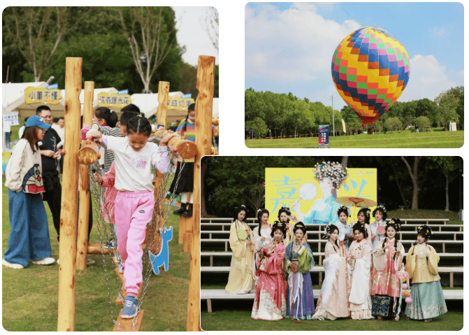 汉服主题区、热气球打卡点、文创市集、露营帐篷区、儿童游乐区,五大主题空间并行开放,让市民和游客在欣赏音乐之余,能身着汉服漫步、淘选匠心好物、在帐篷下小憩畅谈。这不仅丰富了全天候的游玩体验,更让音乐节成为一场可听、可看、可玩、可分享的综合性都市假日盛宴。
